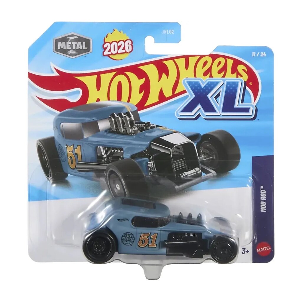 Miniatura Hot Wheels XL Mod Rod, escala 1:43 da série Hot Wheels XL. Com pintura de qualidade e detalhes realistas, é uma peça que valoriza qualquer coleção e encanta fãs de carros da Hot Wheels